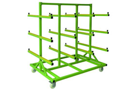 玻璃推車 玻璃推車,是一種跟倉儲貨架配套非標(biāo)定制的配套工具,專門用于做玻璃的搬運(yùn)的物流工具。 產(chǎn)品特點(diǎn) 1.噪音小,搬運(yùn)中發(fā)出聲音小 2.有一...
